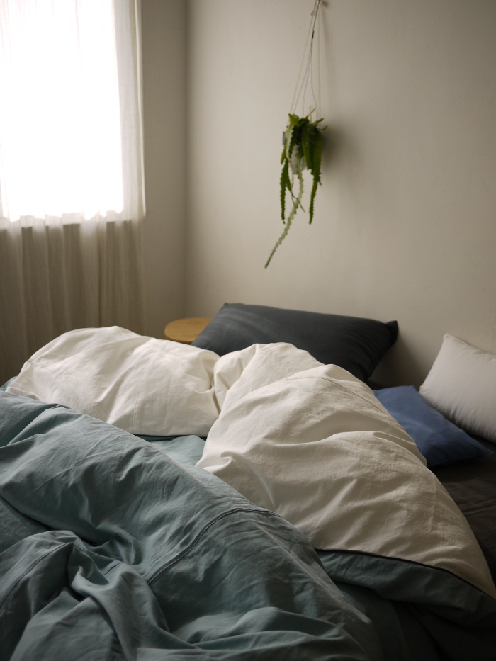 100% 천연 면원단에 자연염색으로 마무리한 퀄리티 좋은 패브릭으로 제작한 베딩입니다.