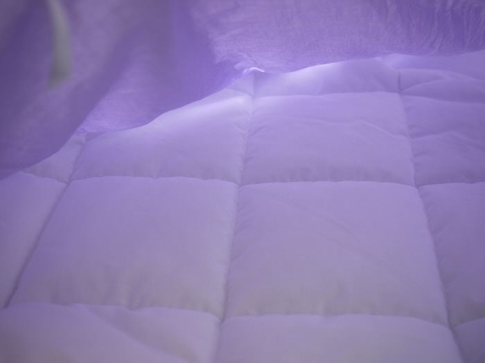 촬영된 상품은 홑겹의 이불 커버 속 한쪽면에 얇게 누벼진 패딩솜을 덧데어